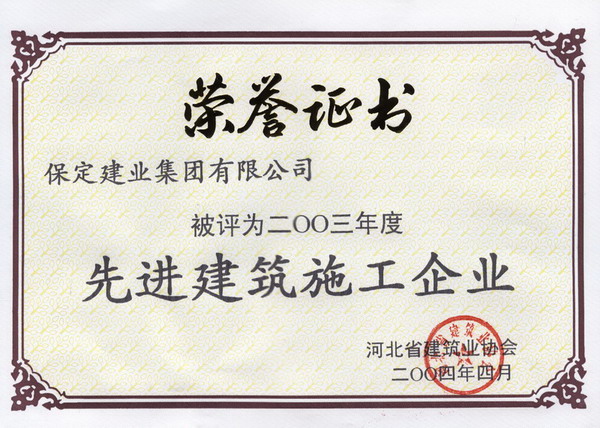 03年度省先進建筑施工企業(yè)證書