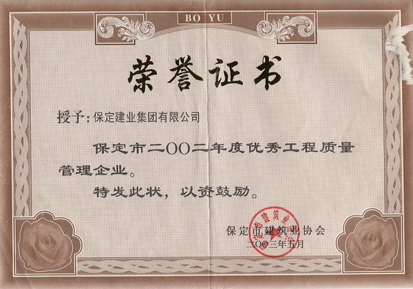 02年度市工程質量管理優(yōu)秀企業(yè)...