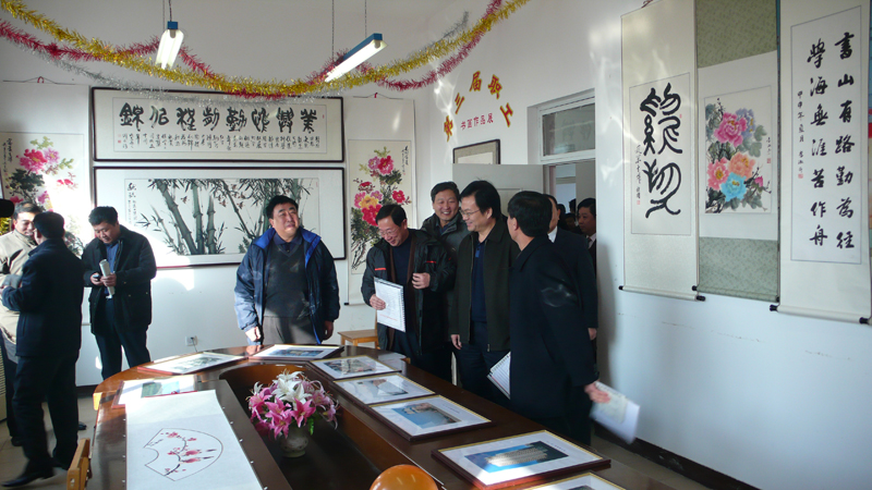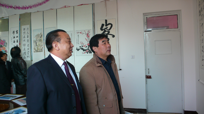 董事長張?zhí)m柱陪同建設局領導參觀十周年書畫展