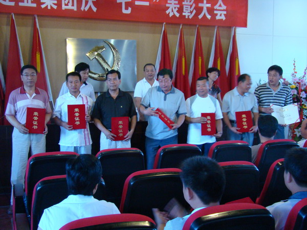 為迎接建黨八十八周年, 2009年6月29日上午,集團公司黨委在六樓大會議室舉行了隆重的慶“七一”表彰大會,對在過去的一年中,集團公司各方面工作中涌現(xiàn)出來的先進黨支部、優(yōu)秀共產黨員、優(yōu)秀黨務工作者進行了表彰。