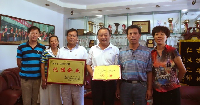 2009年8月12日上午,保定市總工會有關(guān)領(lǐng)導(dǎo)親臨我集團公司,為我集團公司頒發(fā)河北省“安康杯”競賽活動優(yōu)勝企業(yè)獎牌,為集團公司董事長張?zhí)m柱同志頒發(fā)全國“安康杯”競賽活動優(yōu)秀組織者證書。這是我集團公司繼榮獲河北省“AAA級勞動關(guān)系和諧單位”后,獲得的又一殊榮,標(biāo)志著我集團公司安全管理工作邁上了新臺階。