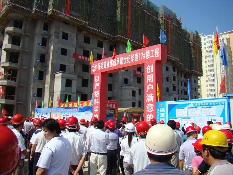 2010年7月20日,由市建設(shè)局安監(jiān)站在華北電力大學(xué)會(huì)議室組織召開了建設(shè)系統(tǒng)安全文明施工現(xiàn)場(chǎng)會(huì)。會(huì)議有省、市安監(jiān)站領(lǐng)導(dǎo),市、縣、區(qū)建設(shè)局、安監(jiān)站主要領(lǐng)導(dǎo),全市及駐保主要建筑施工企業(yè)負(fù)責(zé)人參加。集團(tuán)六公司世紀(jì)華庭17號(hào)樓項(xiàng)目部被選為與會(huì)人員參觀的樣板項(xiàng)目部。